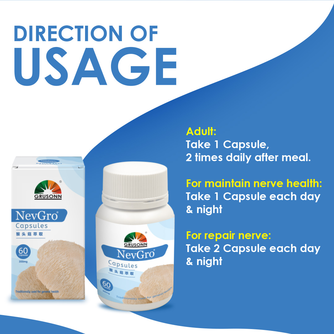 NevGro® Capsule, Extract of Fresh Organic Lion’s Mane Mushroom